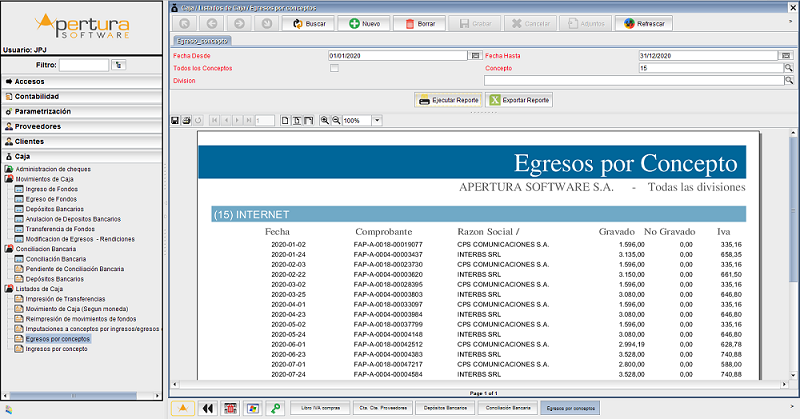 Permite administrar todo tipo de cajas y bancos. Generar la conciliación bancaria. Administración de cheques. Realizar movimientos de ingreso y egreso de caja, depósitos bancarios, transferencias entre cajas. Generar los asientos correspondientes automáticamente. Tiene gran flexibilidad al poder crear cuentas propias (conceptos) que sumarizan en las cuentas contables, como también comprobantes parametrizables para evitar errores en la imputación.